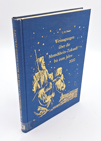 Huter, C[arl] H[einrich]: Weissagungen über die Menschheits-Zukunft bis zum Jahre 2000. Heinrich Huter Verlag, Stuttgart 1962. Gr.-8°. 199 S. OLwd. mit reicher Goldprägung.