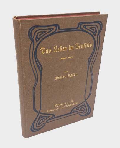 Schlör, Gustav: Das Leben im Jenseits. Kundgebungen von hohen Geistern aus vielen Jahrhunderten. Verlag von „Das Beste im Leben“, Eßlingen a. Neckar o.J. [um 1906]. 383 S. OLwd. im Jugendstil mit Goldprägung.