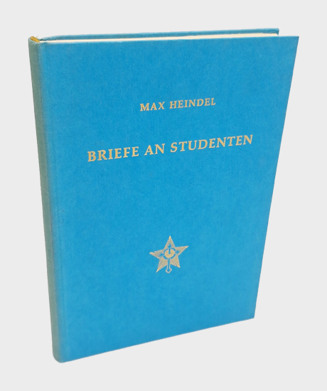 Heindel, Max [Pseudonym] = Carl Louis Fredrik Heindl / Graßhoff: Briefe an Studenten von Dezember 1910 bis Einschließlich Januar 1919. Rosenkreuzer-Gemeinschaft, Darmstadt 1970. 1 Bl., VII, 211 S., 2 Bl. Vlgs.-Anz. OPappband mit Goldprägung.