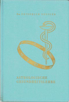 Nessler, Dr. Friedrich: Astrologische Gesundheitslehre. (Mit Hausmitteln). Es werden sehr häufige Krankheiten in alphabetischer Reihenfolge herausgegriffen und zugleich gezeigt, welche Hausmittel angewendet werden können. Tilia Verlag und Buchvertrieb, Wiesbaden 1961. Gr.-8°. 119S. OKunstldr. mit reicher goldpr.