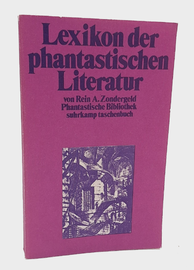 Zondergeld, Rein A.: Lexikon der phantastischen Literatur. Suhrkamp Verlag, Frankfurt am Main 1983. Erste Auflage. 313, [1] S., 3 Bl. Vlgs.-Anz. Illustr. OKarton.
