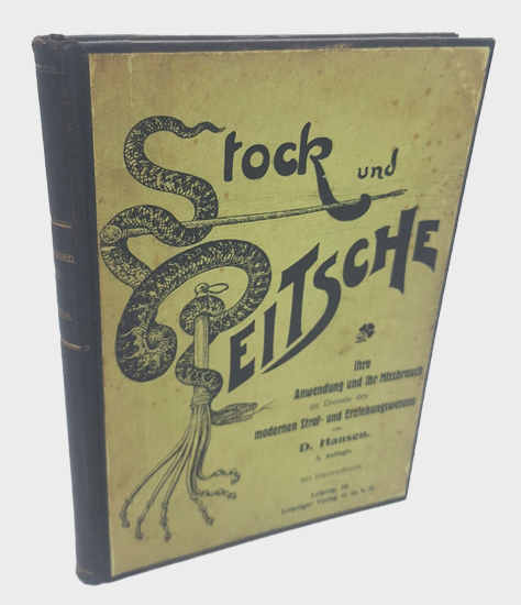Hansen, D.: Stock und Peitsche. Ihre Anwendung und ihr Missbrauch im Dienste des modernen Straf- und Erziehungswesens. Leipziger Verlag G.m.b.H. [vormals H. R. Dohrn], Leipzig o.J. [ca. 1903]. Dritte umgearbeitete Auflage. Gr.-8°. Mit Illustrationen. 2 Bl., 213, [1] S. Priv. Halblederband der Zeit.