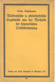 Kohnstamm, Dr. Oscar: Medizinische u. philosophische Ergebnisse aus der Methode der hypnotischen Selbstbesinnung. München, Ernst Reinhardt 1918. Gr.-8°. Mit 1 Port. u. 1 Textfig. VIII, 38 S. OKart.