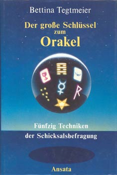 Tegtmeier, Bettina: Der große Schlüssel zum Orakel. Fünfzig Techniken der Schicksalsbefragung. Interlaken, Ansata-Vlg. Paul A. Zemp 1985. Gr.-8°. Mit 3 Farbtaf. u. zahlr. Textabb. 457 S., 3 Bl. OPpbd. mit OUmschl.