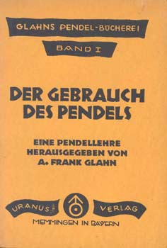 Glahn, A(ugust) Frank: Der Gebrauch des Pendels. Eine Pendellehre. Glahns Pendel-Bücherei, Band I. Uranus-Verlag, Memmingen/Bayern 1930. (EA) 89 S., 4 Bl. Vlgs.-Anz. OKart.