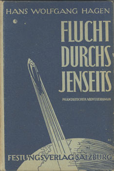 Hagen, Hans Wolfgang: Flucht durchs Jenseits. Phantastischer Abenteuerroman. Festungsverlag, Salzburg 1946. 235 S., 2 Bl. illustr. OPp.