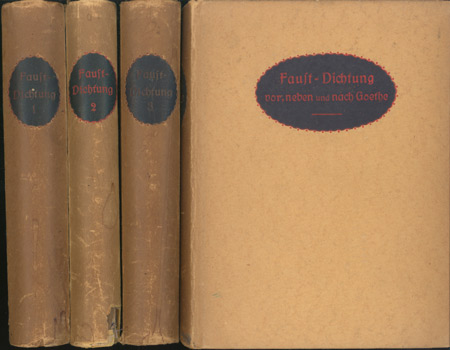 Wendriner, Karl Georg (Hrsg.): Die Faustdichtung vor, neben und nach Goethe. (4 Bde., so komplett). Morawe & Scheffelt Verlag, Berlin 1913. Kl.-8°. 355; 308; 362, 2 Bl.; 352 S. OPp. Bde.