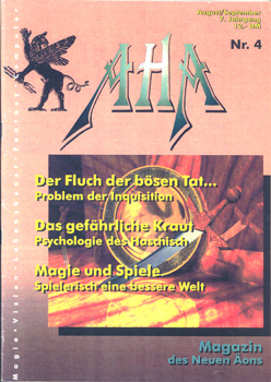 AHA. Magazin des Neuen Äons. (August / September 1995. 7 Jahrgang, Nr. 4). EVOLOS Verlag Sabrina Ulbrich, Bergen/Dumme 1995. 4°. Mit zahlreichen Textabbildungen. 50 S. farbig illustr. OBroschur.