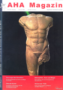 Inhalt: Elemente der Erfahrung oder: Warum die Götter des Liber Legis immer mit uns – und wir mit ihnen – sind. (von MDE). Das Auge des Künstlers: Kunst und Magie als begriffliches Geschwisterpaar. (von Zardoz). Kunst und Okkultismus: Atmosphäre, Aura und Magie: Gernot Böhme über das Atmosphärische. (von Cosmo Ho). Vom katholischen Traditionalisten zum altöstereichischen Thelemiten. (von Thomas Kovacs). Avantgarde, Synthese, Okkultismus: Aktuelles zur Okkulten Kunst. (von Alexander Graeff). Der Gesang des Orpheus in deutschen Landen. (Bericht von Dominik Irtenkauf). Inspirierte Intuition: Ein Interview mit Tate Tränensohn. (von Zardoz u. Arator). Der Da Vinci Code – Eine theologische Idiotie? (von Spectator). Verlust der Tiefe. Zeitgenössische Kunst zwischen Markt und Mythos, Transzendenz und Trivialität. (von Martin Weyers). Vorübergehend unvollendet: Golem. Das Geheimnis menschlichen Schaffens. Teil V – Flucht aus dem Kerker. (von Dominik Irtenkauf) etc. – Umschlag schwach berieben.
