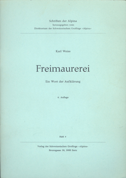 Weiss, Karl: Freimaurerei. Ein Wort der Aufklärung. Verlag der c, Bern o.J. [um 1980]. 6. Auflage. 23 S. OKarton.