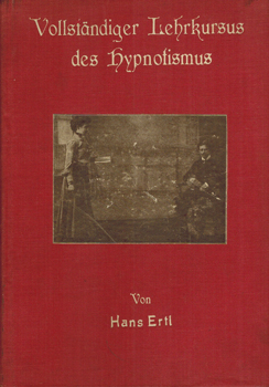 Ertl, Hans: Vollständiger Lehrkurs des Hypnotismus in allen seinen Phasen und verwandten Erscheinungen. Eine Einfache und praktische Methode zur schnellen und unbedingten Erlernung des Hypnotismus und der suggestiven Einwirkungen (Suggestion). Allgemein verständlich bearbeitet nach dem Ergebnis jahrelanger Erfahrungen auf dem Gebiete des Unterrichtswesens in Hypnotismus etc. Dargestellt in ganz eigenartigen, unbedingt faßlichen Lektionen und Belehrungen. Mit 24 Abbildungen und Über 40 genau beschriebenen Experimenten in mündlicher, telephonischer, schriftlicher und geistiger Suggestion. Verlag von Max Spohr, Leipzig 1911. 5. bedeutend verbesserte und vermehrte Auflage. 2 Bl., 144 S. OLwd.