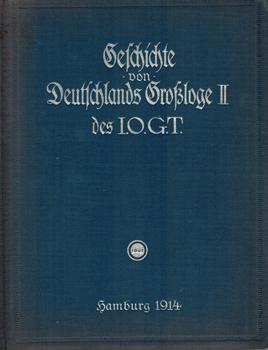 Geschichte von Deutschlands Großloge II des Internationalen Guttemplerordens (I.O.G.T.). Deutschlands Großloge II des I.O.G.T., Hamburg 1914, Gr.-8°. Mit Abbildungen (Tafeln, Karten) u. montierten s/w Portraits. 360 S. OLwd. m. silberner Prägung.