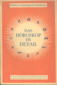 Leo, Alan (Ps.) = William Frederik Allan: Das Horoskop im Detail. Nach der dritten englischen Auflage übersetzt von Wilhelm Becker. Berlin-Steglitz, Astrologischer Verlag Wilhelm Becker [ohne Jahr, ca.1931]. Zweite verbesserte Auflage. Mit Textfig. 126 S., 1 Bl. Vlgs.-Anz. OKart.