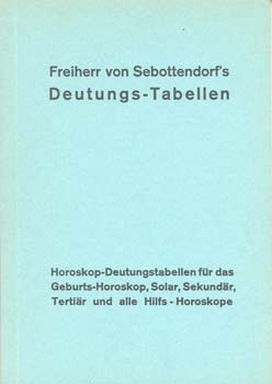 Sebottendorf, Freiherr [Rudolf] von (Ps.) = Adam Alfred Rudolf Glauer: Deutungs – Tabellen. Horoskop – Deutungstabellen für das Geburts – Horoskop, Solar, Sekundär, Tertiär und alle Hilfs – Horoskope. Baumgartner Verlag, Warpke – Billerbeck o. J. (um 1950) 100 S. OKart.
