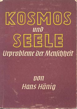 Hänig, Hans: Kosmos und Seele. Urprobleme der Menschheit. Gelnhausen – Gettenbach – Amsterdam – Budapest – Lugano, Vlg. Pfister & Schwab 1941. 205 S., 1 Bl. Vlgs.-Anz. OBrosch.