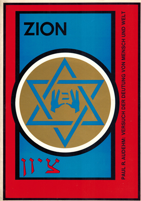 Zion. Versuche der Deutung von Mensch und Welt. Privatdruck (Typoskript) Paul R[üdiger] Audehm, Frankfurt am Main 1970. 4°. 20 Bl. farb. illustr. OBroschur.
