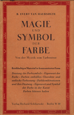 Haersolte, R. Evert van: Magie und Symbol der Farbe. Von der Mystik zum Farbentest. Verlag Richard Schikowski, Berlin o. J. [1952] schmal 8°. 31 S. OBrosch.
