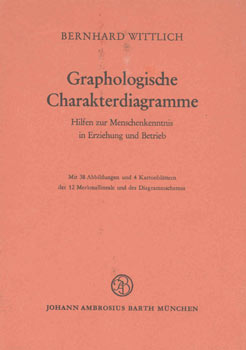 Wittlich, Dr. Bernhard: Graphologische Charakterdiagramme. Hilfen zur Menschenkenntnis in Erziehung und Betrieb. München, Johann Ambrosius Barth Verlag 1956. Mit 38 Abb. [im Text] u. 4 Kartonblättern der 12 Merkmallineale u. des Diagrammschemas [als lose Beilage]. 4 Bl., 88 S. OKart.