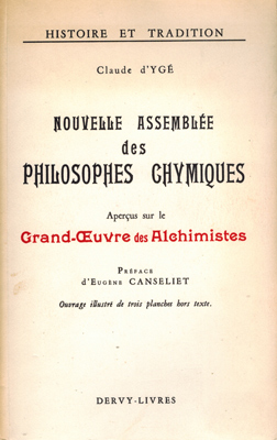 D’Yge, Claude: Nouvelle assemblée des philosophes chymiques. Aperçus sur le grand-Œuvre des Alchimistes. Dervy-Livres, Paris 1972. Gr.-8°. Ouvrage illustré de trois planches hors texte. Préface d’Eugène Canseliet. 233 S., 2 Bl., 1 (w) OKarton.