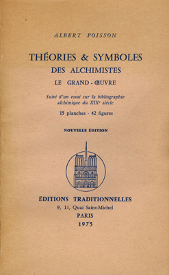 Poisson, Albert: Théories & symboles des alchimistes. Le Grand Oeuvre. Éditions Traditionnelles, Paris 1975. 15 planches, 42 figures. Suivi d’un essai sur la bibliographie alchimique du XIXe siècle. XII, 184 S. illustr. OKarton.