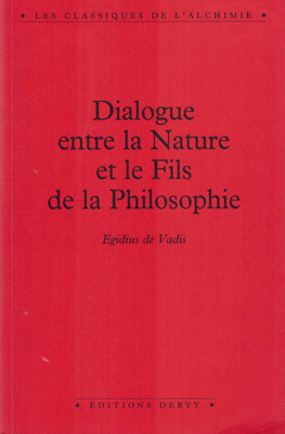 De Vadis, Egidius: Dialogue entre la Nature et le Fils de la Philosophie. Éditions Dervy, Paris 1993. Préface de Bernadus G. Penotus a Portu. 107 S., 1 Bl., 1 (w) OKarton.