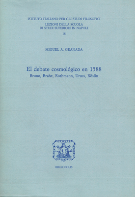 Granada, Miguel A[ngel]: El debate cosmológico en 1588: Bruno, Brahe Rothmann, Ursus, Röslin. Bibliopolis, Napoli 1996. 165 S., 1 Bl., 1 (w) OKarton.