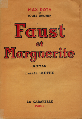 Roth, Max et Simonnin, Louise: Faust et Marguerite. Roman d’après Goethe. La Caravelle, Paris 1947. Gr.-8°. 1 Bl., 307 S., 1 Bl. OKarton mit OUmschlag.