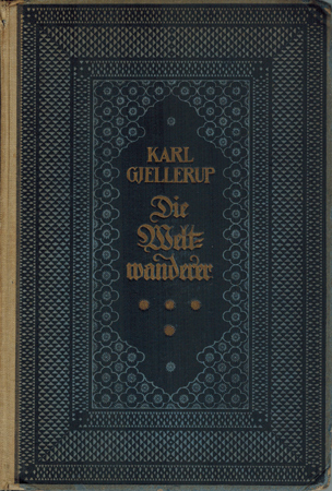 Gjellerup, Karl: Die Weltwanderer. Romandichtung in drei Büchern. Verlag Quelle & Meyer, Leipzig 1922. Dritte Auflage. 14. bis 18. Tausend. Buchschmuck und Einbandzeichnung von Paul Hartmann. 447 S. OLwd.