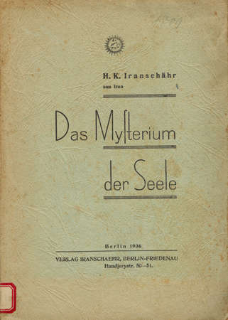 Iranschähr, H[ossein] Kazemzadeh: Das Mysterium der Seele. Orientalischer Verlag Iranschähr, Berlin-Friedenau 1936. Gr.-8°. 112 S. OKarton.