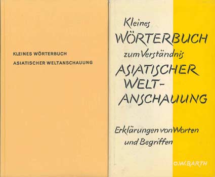Kleines Wörterbuch zum Verständnis asiatischer Weltanschauung. Erklärungen von Worten und Begriffen. Weilheim / Oberbayern, Otto Wilhelm Barth Verlag1966. 88 S., 2 Bl. Vlgs.-Anz. OPp. mit OUmschl.