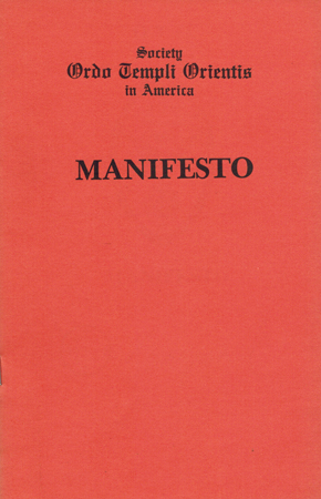 Manifesto. Society Ordo Templi Orientis in America, 1980. Second Printing. 1 Bl., 5 S. OKarton.