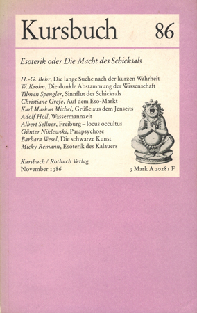 Michel, Karl Markus u. Spengler, Tilman (Hrsg.): Kursbuch 86 : Esoterik oder Die Macht des Schicksals. Kursbuch / Rotbuch Verlag, Berlin 1986. 177 S., 3 Bl. Vlgs.-Anz. illustr. OKarton.