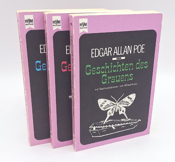 Poe, Edgar Allan: Geschichten des Grauens. (3 Bände). Wilhelm Heyne Verlag, München 1984. 13. Auflage. Mit Textillustrationen von Alfred Kubin. 251, 1 Bl.; 248, 2 Bl.; 251 S., 2 Bl. illustr. OKarton Bände im OPappschuber.