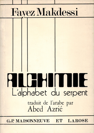 Makdessi, Fayez: Alchimie. L’Alphabet du Serpent. G.-P. Maisonneuve et Larose, Paris 1973. Traduit de l’arabe par Abed Azrié. Ca. 100 Bl. OKarton.