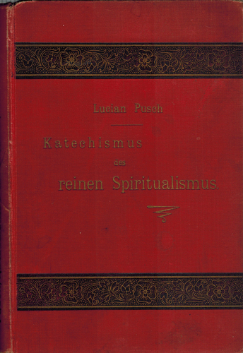 Pusch, Lucian: Katechismus des reinen Spiritualismus. Wegweiser zur Erlangung eines glücklichen Lebens im Diesseits und Jenseits. Druck und Verlag von Oswald Mutze, Leipzig 1899. Zweite Auflage. 2 Bl., 250 S., VI Vlgs.-Anz. OLwd. mit reicher Goldprägung.