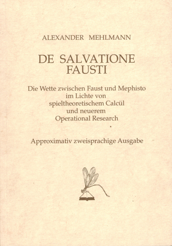 De Salvatione Fausti. Die Wette zwischen Faust und Mephisto im Lichte von spieltheoretischem Calcül und neuerem Operational Research. Ekkehard Faude Verlag, Konstanz 1989. 50 S., 1 Bl. (Falttafel), 3 Bl. OKarton.