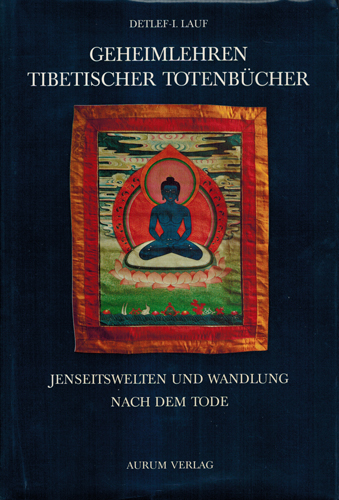 Lauf, Detlef-I[ngo]: Geheimlehren tibetischer Totenbücher. Jenseitswelten und Wandlung nach dem Tode. Ein west-östlicher Vergleich mit psychologischem Kommentar. Aurum Verlag, Freiburg im Breisgau 1977. 2. erweiterte und verbesserte Auflage. Gr.-8°. Mit einem Vorwort von Frederic Spiegelberg. Mit 26 Abb. u. Tabellen und Übersichten im Text sowie 12 Tafeln, davon 4 in Farbe. 288 S., 1 Bl. OLwd. mit Goldprägung u. OUmschlag.