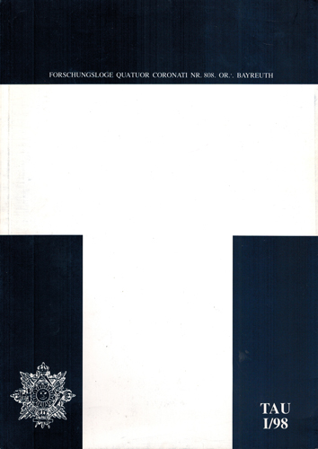 TAU. Zeitschrift der Forschungsloge Quatuor Coronati. Nr. I/1998. Selbstverlag der Freimaurerischen Forschungsgesellschaft Quatuor Coronati e. V., Bayreuth 1998. Gr.-8°. Herausgegeben von Klaus W. Müller. 95 S. OKarton.