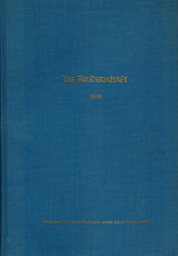 Die Bruderschaft. Zeitschrift der Vereinigten Großlogen von Deutschland. 11. Jahrgang 1969. Bauhütten Verlag GmbH, Frankfurt (ab Heft 7: Hamburg) 1969. 1 Bl. (Inhalt), 299 S. OLwd. mit Goldprägung.