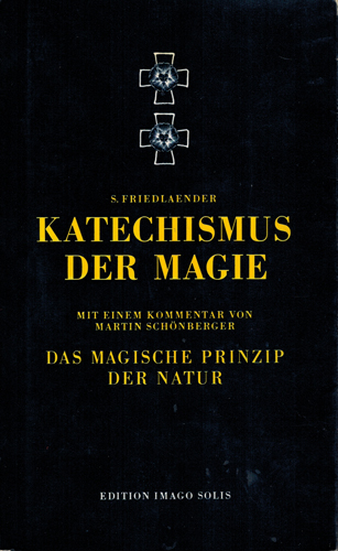 Friedlaender, S[alomo]: Katechismus der Magie. Nach Immanuel Kants “Von der Macht des Gemütes” und Ernst Marcus “Theorie der Natürlichen Magie”. In Frage- und Antwortform Gemeinfasslich Dargestellt. Aurum Verlag, Freiburg 1978. Mit Kommentar von Martin Schönberger. XXIII, 123 S., Illustr. OKart.