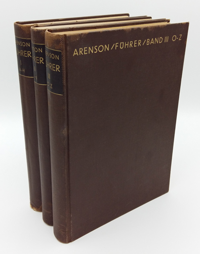 Ein Führer durch die Vortragszyklen Rudolf Steiners (1-50). 3 Bände (Arenson/Führer). Selbstverlag (Auslieferung: Anthroposophische Bücherstube GmbH), Berlin 1930. 4°. 380, 2 [w]; 369, 1 [w]; 401 S., 1 [w] OLwd. Bände mit Goldprägung.