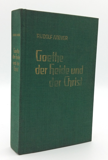 Meyer, Rudolf: Goethe – der Heide und der Christ. Verlag Urachhaus, Stuttgart 1965. 2. völlig neu bearbeitete und erweiterte Auflage, 6.-9. Tausend. 386 S., 1 Bl. OLwd. mit Goldprägung.