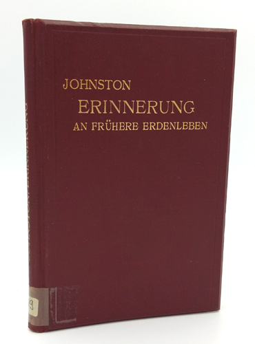 Johnston, Charles: Die Erinnerung an frühere Erdenleben. Theosophische Central-Buchhandlung (Deckel blindgeprägt mit: Theosophisches Verlagshaus Dr. Hugo Vollrath), Leipzig 1902. Autorisierte deutsche Ausgabe von E. A. Kernwart [d.i. Ernst Artur Weber]. 128 S. OLwd. mit Deckel- und Rückengoldprägung.