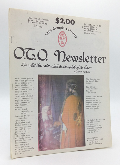 Ordo Templi Orientis (Hrsg.): O.T.O. Newsletter. Vol. III, No. 10-11. (Double issue) Winter 1979 & Spring 1980. Ordo Templi Orientis, Berkeley 1979/80. 4° [216 x 280 mm]. Mit Abbildungen 120 S. geklammerte OBroschur.