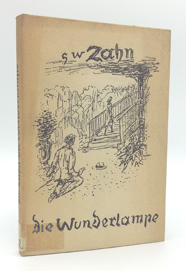 Zahn, H[ermann] W[olfgang]: Die Wunderlampe. Hebel-Verlag, Baden-Baden 1948. Einbandentwurf und Initiale: Gerhard Berger. 139, 1 (w) S., 2 Bl. (Inhalt u. Vlgs.-Anz) OPp. mit OUmschlag.