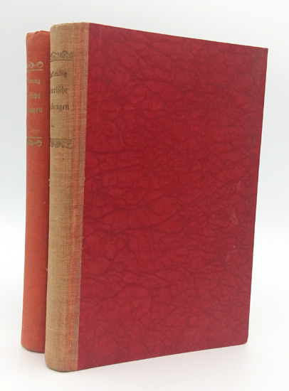 Kerning, J. B. [Pseudonym] = Johann Baptist Krebs: Maurerische Mitteilungen. Manuskripte für Brüder Freimaurer. Sechs Sammlungen in zwei Bänden. Druck und Verlag von Karl Rohm, Lorch (Württemberg) 1910. Mit 1 Porträt des Verfassers [als Frontispiz]. Neu herausgegeben und mit einem Vorwort versehen von Gottfried Buchner. 359; 399 S. OHLwd. Bände mit Rückengoldprägung.