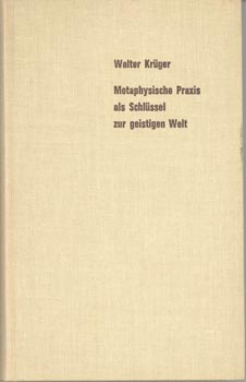 Krüger, Walter: Metaphysische Praxis als Schlüssel zur geistigen Welt. Praktisches Lehrbuch mit zahlreichen [farb.] bildlichen Darstellungen. Freiburg / Breisgau, Hermann Bauer 1968. 192 S. OLwd.