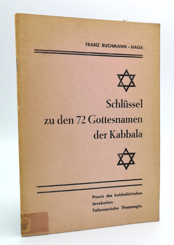 Buchmann – Naga, Franz: Der Schlüssel zu den 72 Gottesnamen der Kabbala. Osiris-Verlag [Erich Sopp], Sersheim/Württemberg 1955. 50 S. illustr. OKarton.