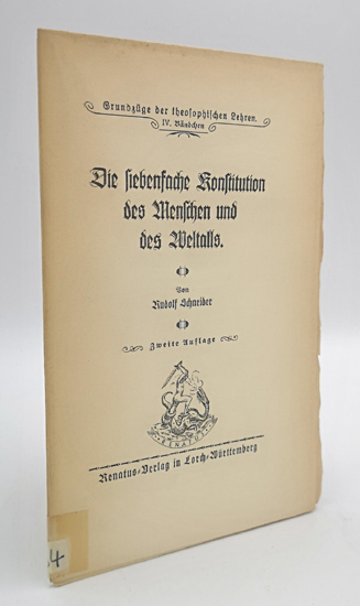 Schneider, Rudolf: Die siebenfache Konstitution des Menschen und des Weltalls. Renatus-Verlag, Lorch-Württemberg 1933. Zweite Auflage. 32 S. OBroschur.
