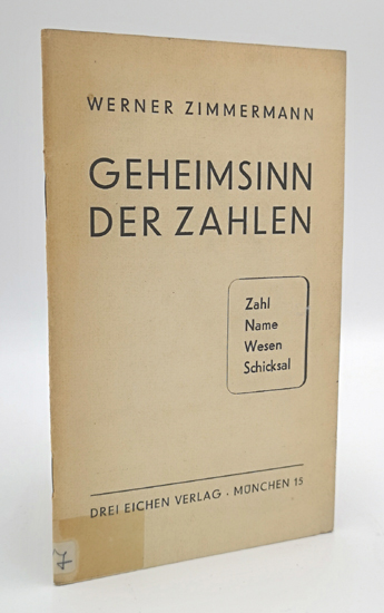 Zimmermann, Werner: Geheimsinn der Zahlen. Zahl – Name – Wesen – Schicksal. Drei Eichen Verlag, München 1949. 6. – 10. Tausend. 32 S. OKarton.